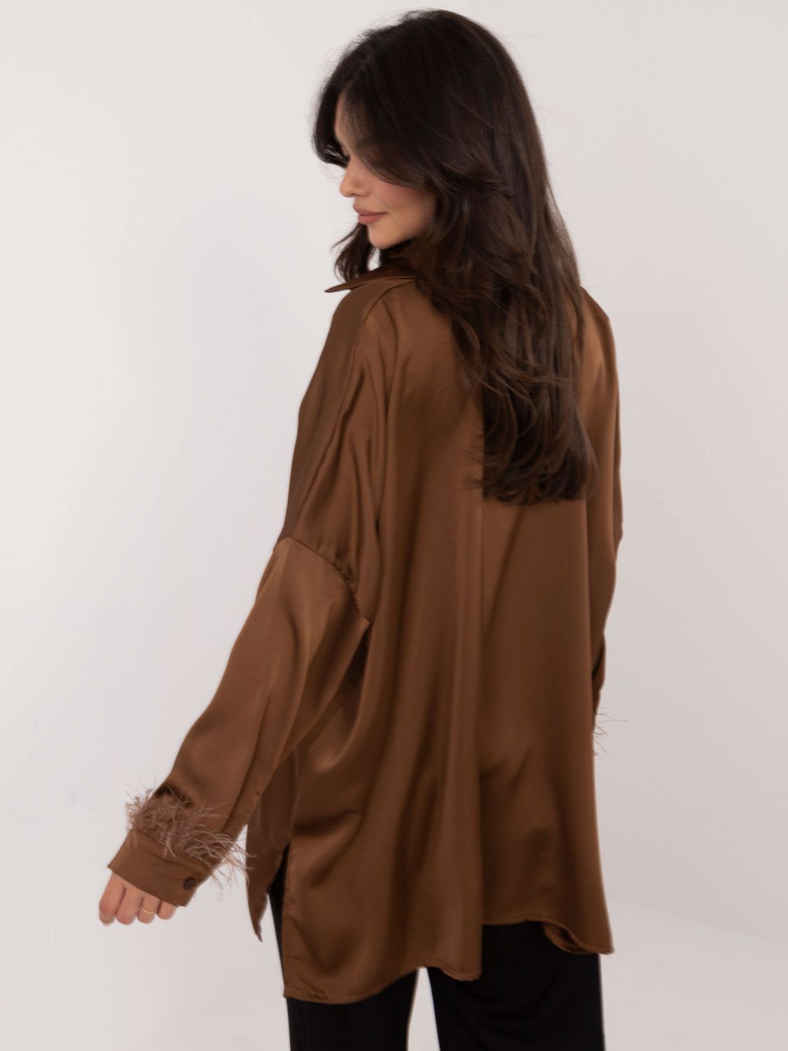 Entdecken Sie Eleganz und Komfort mit unserer braunen Bluse, die ideal für Geschäftstreffen, festliche Anlässe oder Abendveranstaltungen ist. Diese klassische Bluse mit langen Ärmeln und Kragen besteht aus hochwertigem Material, das 70% Polyester und 30% Viskose kombiniert, was ein angenehmes Gefühl auf der Haut und eine lange Lebensdauer garantiert. Mit ihrem feinen glatten Muster und dem eleganten Schnitt wird diese Bluse zu einem unverzichtbaren Teil Ihrer Garderobe. Ihr praktischer Knopfverschluss und die lange Länge bieten perfekten Komfort und einen stilvollen Look. Das Model auf dem Bild trägt die Größe one size, ihre Maße sind: Höhe 173 cm, Brust 85 cm, Taille 62 cm und Hüfte 95 cm. Die Maße der Bluse in one size sind: Breite unter den Achseln - 84 cm, Gesamtlänge - 75 cm, Ärmellänge - 63 cm. Vergessen Sie nicht, dass Sie diese Bluse bei 30 °C in der Maschine waschen können, was ihre einfache Pflege gewährleistet.