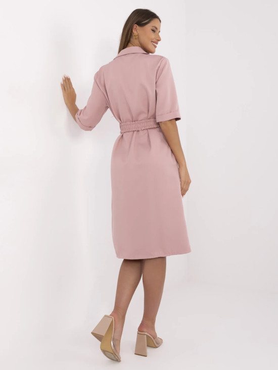 Entdecken Sie die perfekte Kombination aus Stil und Komfort mit diesem eleganten Midi-Kleid in wunderschönem Dunkelrosa. Das Hemdkleid mit kurzen Ärmeln ist ideal für verschiedene Anlässe, sei es für die Arbeit, Besuche oder den Alltag. Mit einem dezenten Kragen und einem glatten Muster wirkt es sehr raffiniert. Das Kleid ist mit praktischen Taschen und einem Gürtel ausgestattet, der Ihre Figur betont. Hergestellt aus hochwertigem Polyester mit einem Anteil an Elasthan, garantiert es angenehmen Tragekomfort und eine hervorragende Passform. Maschinenwäsche bei 30 °C sorgt für einfache Pflege. Das Model auf dem Bild trägt die Größe One Size, ihre Maße sind: Höhe 176 cm, Brust 90 cm, Taille 62 cm, Hüfte 94 cm. Die Maße des Kleides in One Size sind: Breite unter den Achseln 51 cm, Breite in der Taille 48 cm, Ärmellänge 32 cm (ab Naht), Breite in den Hüften 56 cm und Gesamtlänge 112 cm.