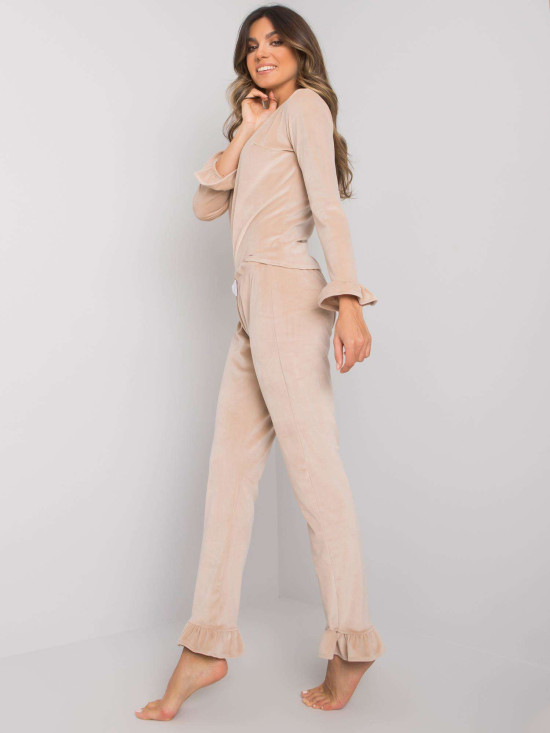 Entdecken Sie Komfort und Stil mit unserem beigen Damen-Pyjama, das ideal für die Entspannung nach einem langen Tag ist. Dieses Pyjama besteht aus hochwertiger Viskose, die für ihre Weichheit und Atmungsaktivität bekannt ist und maximalen Komfort während des Schlafs garantiert. Lange Ärmel und ein V-Ausschnitt verleihen diesem Modell einen eleganten Look, während die Rüsche am unteren Rand des Oberteils einen besonderen Akzent setzt. Das Pyjama ist in Standardgröße erhältlich und in verschiedenen Größen erhältlich, um jeder Figur gerecht zu werden. Mit diesem Pyjama fühlen Sie sich nicht nur wohl, sondern auch stilvoll. Maschinenwäsche bei 30°C sorgt dafür, dass es seine Form und Farbe auch nach vielen Wäschen behält. Zusammensetzung: Viskose (90%), Elasthan (10%).
