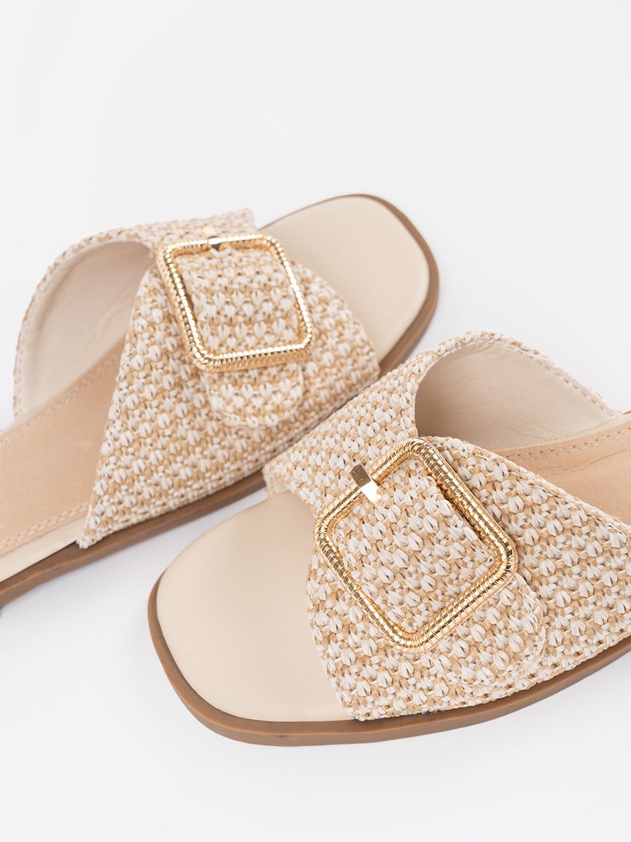 Entdecken Sie die perfekte Kombination aus Stil und Komfort mit unseren beigen Sandalen im weißen Karomuster. Diese eleganten Sandalen sind mit einer offenen Zehenpartie und einem flachen Absatz gestaltet, was maximalen Komfort für den täglichen Gebrauch garantiert. Dank des praktischen Schnallenverschlusses und der offenen Ferse sind sie ideal für Frühling und Sommer. Hergestellt aus hochwertigem Textilmaterial und mit einer natürlichen Lederinnenausstattung, sind diese Sandalen nicht nur stilvoll, sondern auch sehr bequem. Ihr klassisches und modisches Design passt perfekt zu verschiedenen Outfits, egal ob Sie einen Stadtbummel machen oder ein entspanntes Wochenende verbringen. Vergessen Sie nicht, sie in Ihre Garderobe aufzunehmen!