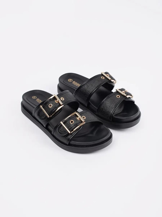 Entdecken Sie die perfekte Kombination aus Stil und Komfort mit diesen schwarzen flachen Sandalen mit Schnallen. Mit einer offenen Zehenpartie und einem praktischen Schlupfdesign sind sie ideal für den täglichen Gebrauch. Hergestellt aus hochwertigem, ökologischem Leder, sind diese Sandalen nicht nur modisch, sondern auch umweltfreundlich. Ihr klassischer und lässiger Stil passt perfekt zu den Frühlings- und Sommertagen, während die Kunststoffsohle für einen bequemen Gang sorgt. Dank ihres universellen Designs können Sie sie mit verschiedenen Outfits kombinieren, egal ob Sie einen Stadtbummel oder ein entspanntes Wochenende planen. Verpassen Sie nicht die Gelegenheit, diese eleganten Sandalen in Ihre Garderobe aufzunehmen!