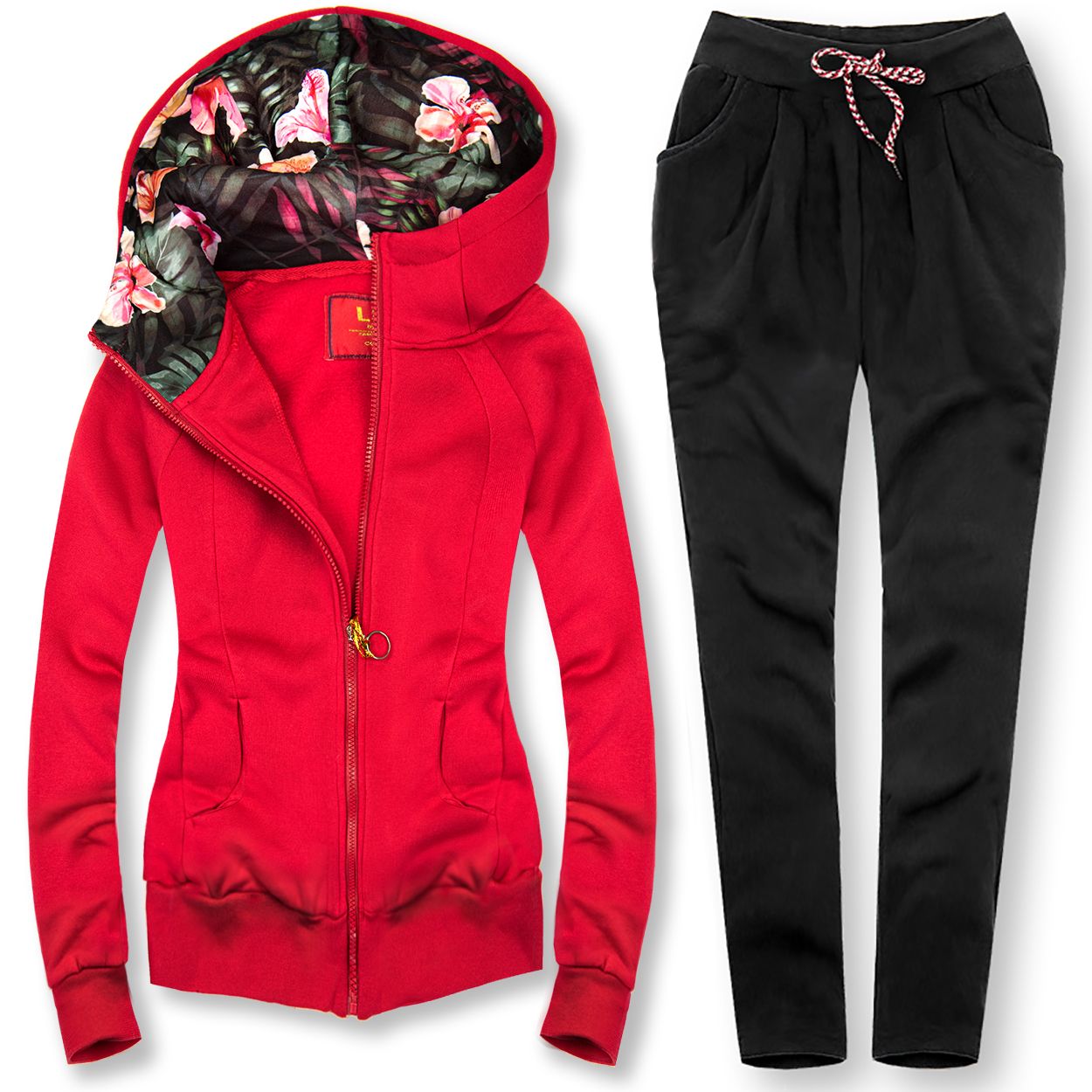 Trainingsanzug mit Kapuze und Blumenfutter rot